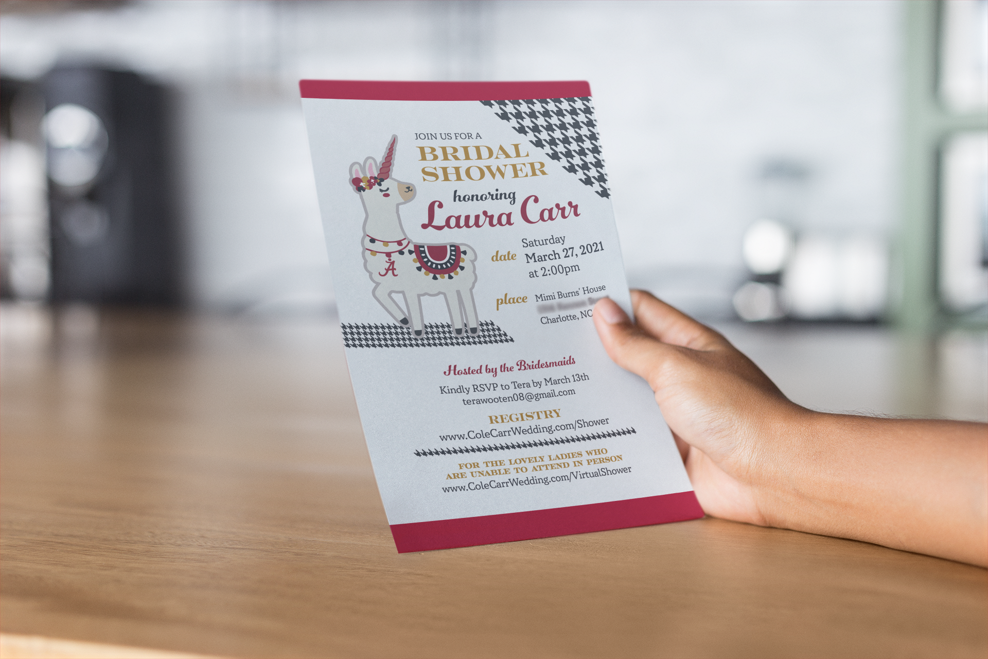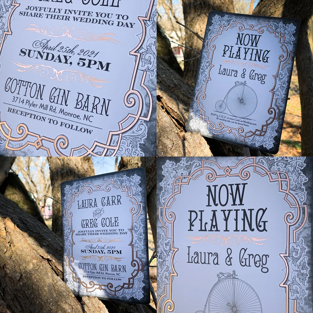 Wedding Invitation I designed for my friends. The theme was 1920s prohibition. Size is 5x7, printed front and back with a rose gold foil.